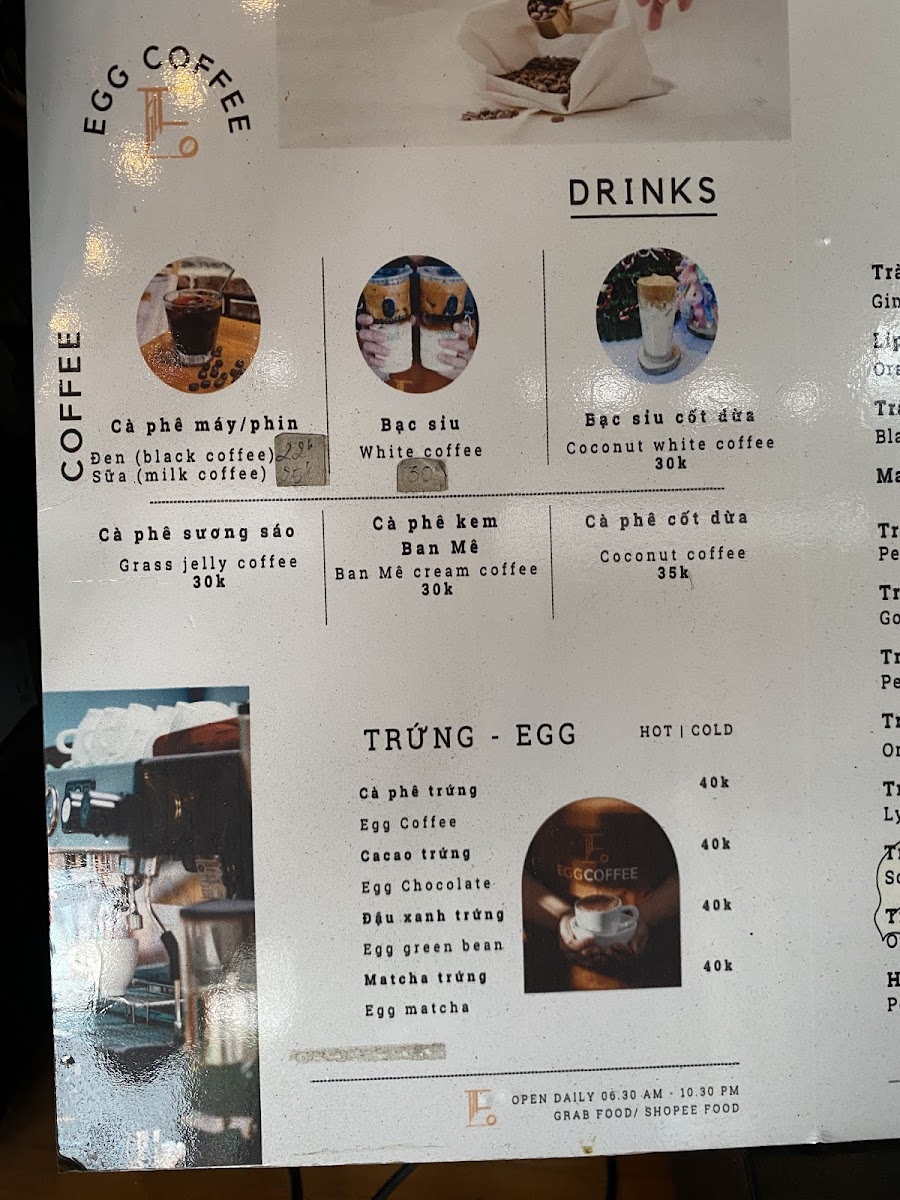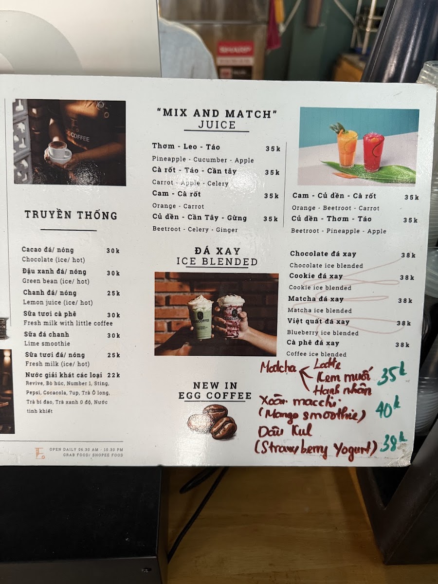 Egg Coffee Menu